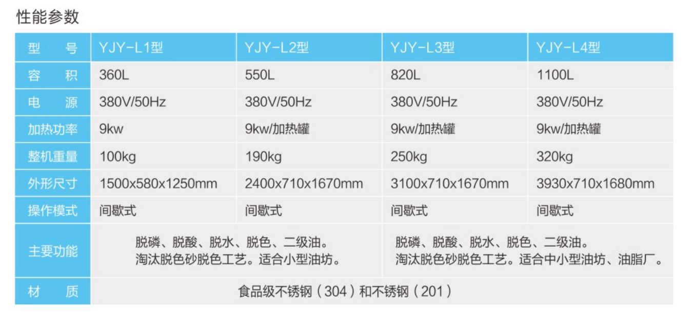 ★采用不銹鋼材質(zhì),可實(shí)現(xiàn)油品的脫磷、脫酸、脫水功能,根據(jù)用戶(hù)需要還可以進(jìn)行恒溫脫色。